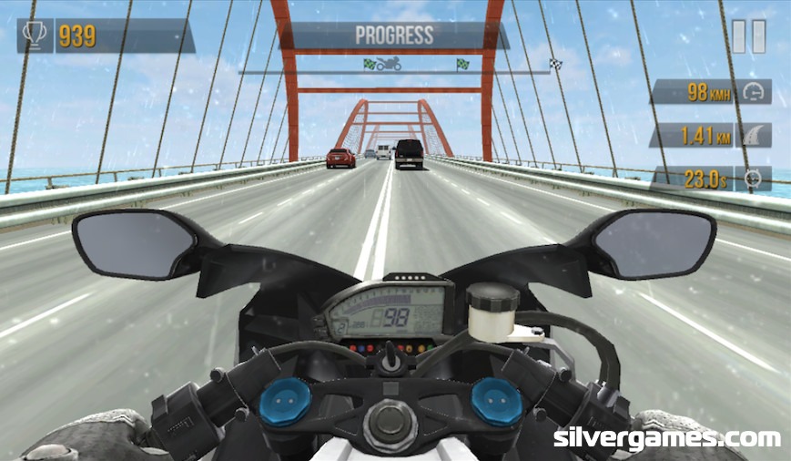 The game features immersive 3D graphics, realistic motorcycle physics, and multiple game modes including Time Trial, Endless, and Career. Players can upgrade their bikes for better speed and handling, switch between first-person and third-person views, and race through diverse environments — from busy city highways to desert roads. The faster and riskier you drive, the more rewards you earn!